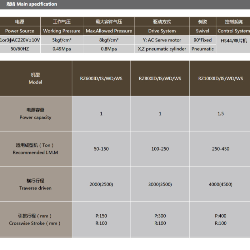 To se také nazývá vertikální typ stroje, jednoosová servo funkce s RA série, rameno je rozdělen na jedno, dvojité, je vhodné pro dílnu, vzdálenost mezi vstřikovací stroj je menší, pokud dílna používá tento model, mechanický produkt po produkt odeslán do zpracovatelské hlavy,Vedoucí dílny v jednom z hlav může být na první pohled jasné pracovní stav dílny, snadno spravovat.